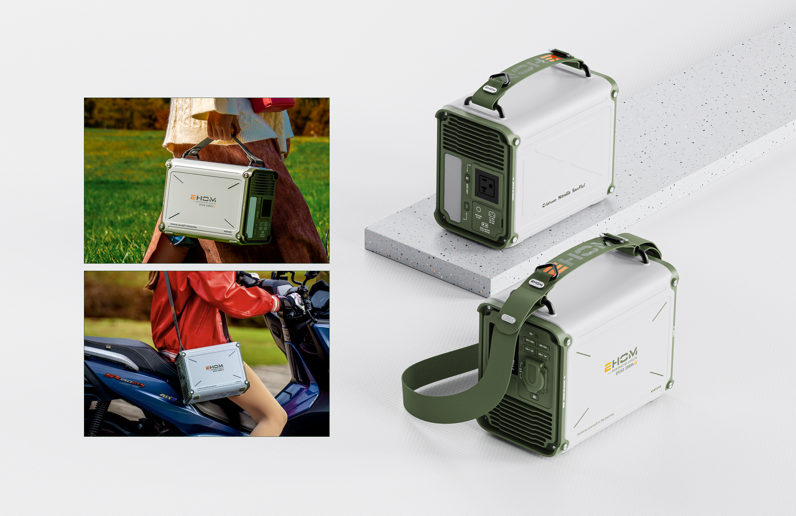 EP350从大自然中汲取设计灵感,采用苔藓绿与云峰灰的配色方案,传递“钟情户外、探索自然”的品牌理念。其线型结构与圆润造型兼具现代感与自然气息,绿色面板不仅美观大方,更具备保护功能,体现出技术与自然和谐共生的设计理念。