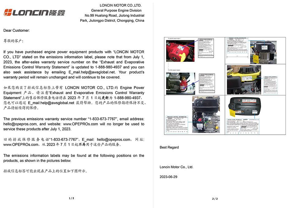 E-mail:US Market:hans.tan@loncinindustries.com; Asian and European Market:jack.wang@loncinindustries.com; Asian and European Market:martin.wang@loncinindustries.com; Domestic Market:04793@loncinindustries.com;