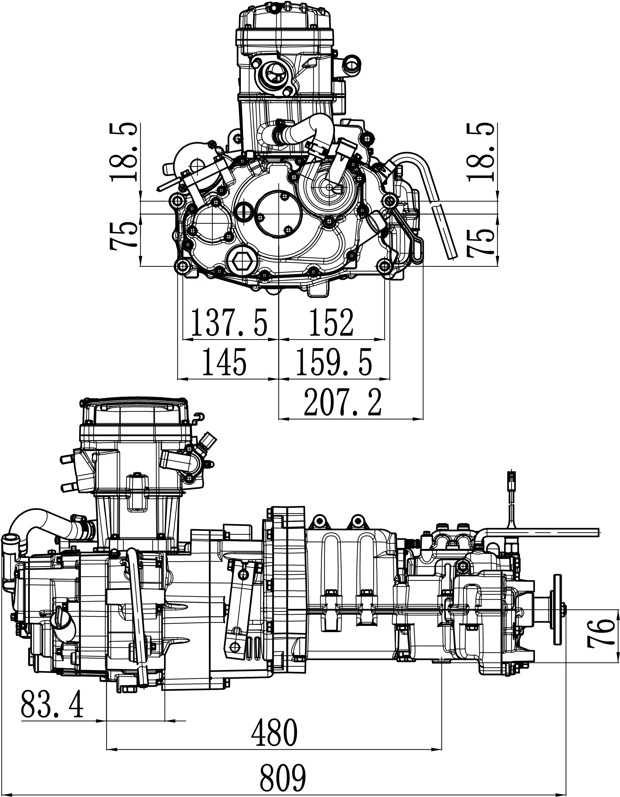 ● Single-cylinder, four-stroke, water-cooled, electric starting engine.