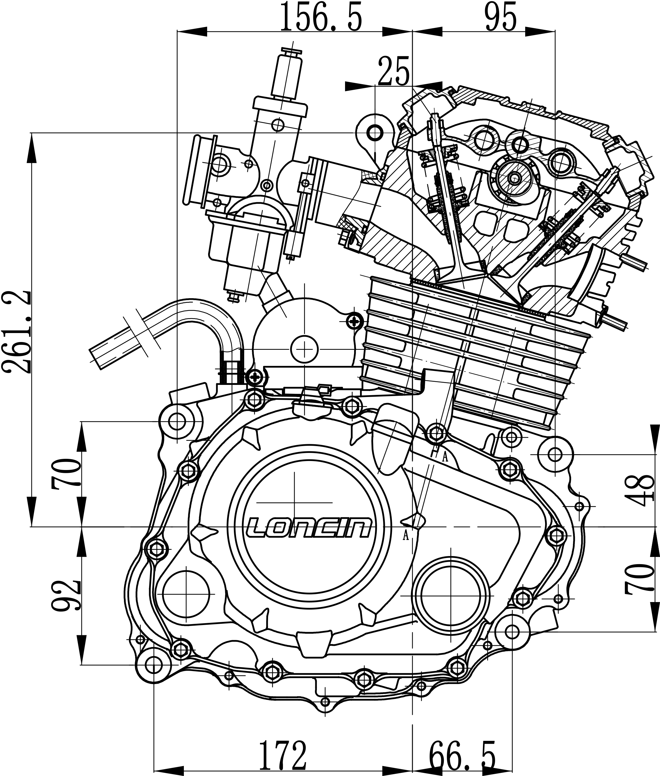 ● Single-cylinder, four-stroke, air-cooled/oil-cooled, electric starting engine.