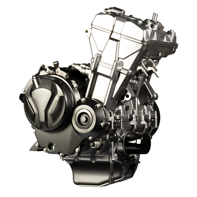 ● Two-cylinder, four-stroke, water-cooled, electric starting engine.