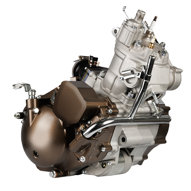 ● Single-cylinder, two-stroke, water-cooled, electric/kick starting engine.