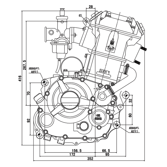 发动机类型 | 单缸、四冲程、强制风冷、顶置气门、全压力润滑 |