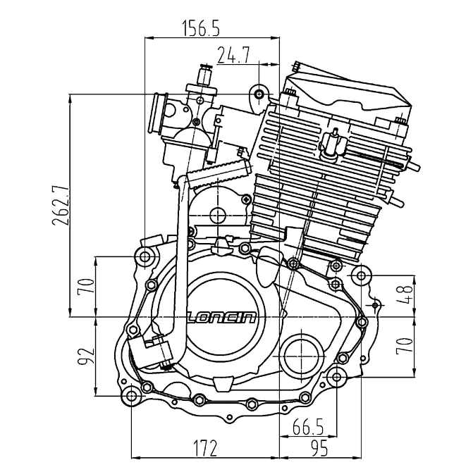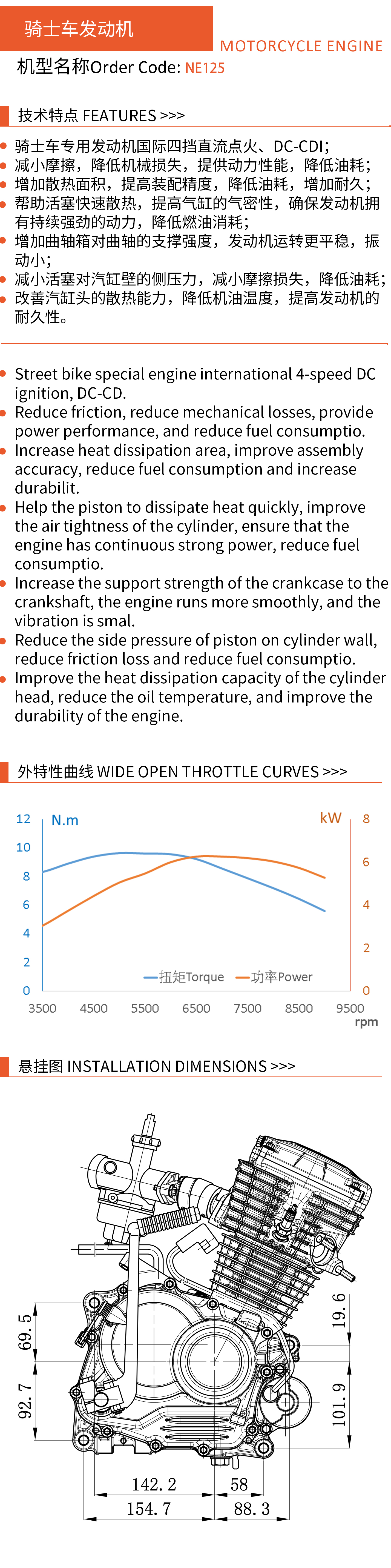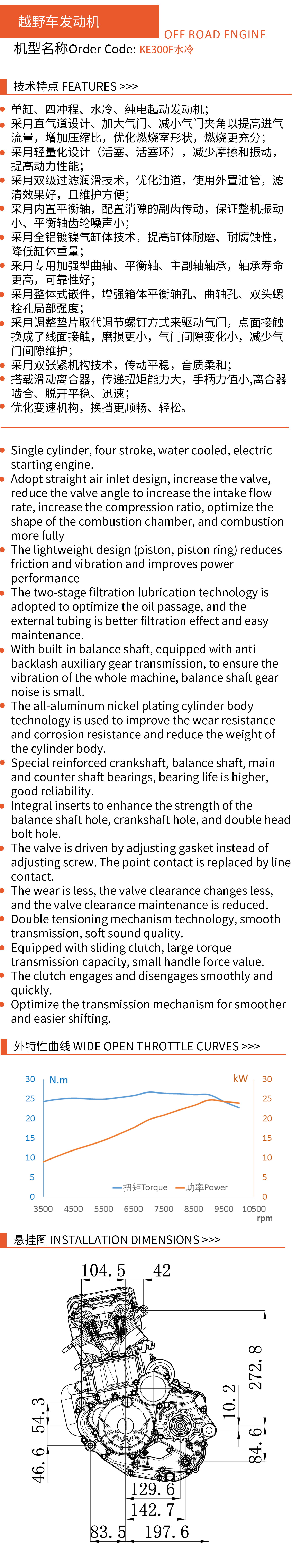 整机通用性强,悬挂尺寸与普通水冷机相同,无需调整车架