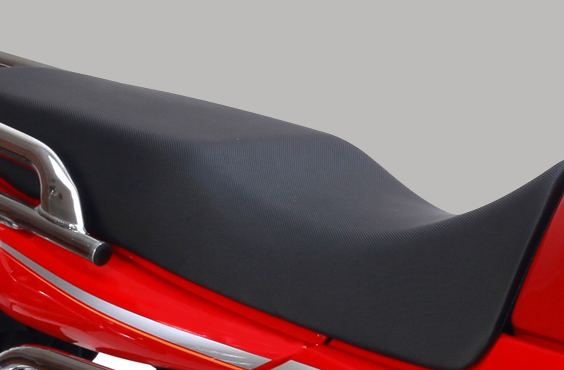 PU宝马坐垫皮革,可双向拉伸,芝麻纹表面皮纹处理,防水、防损、防滑;人性化阶梯形幅度设计,乘坐舒适;