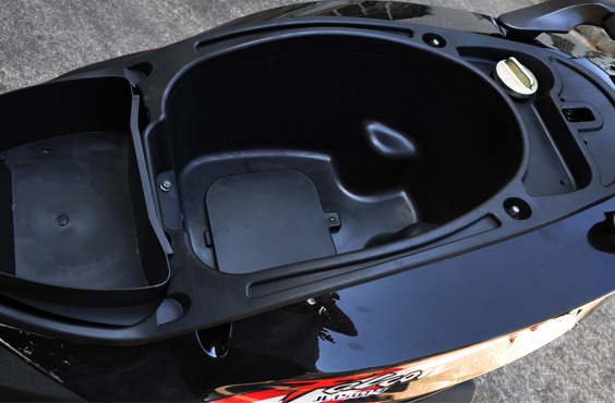 中置超大物箱设计,容量大,可轻易放进全盔,使用方便;