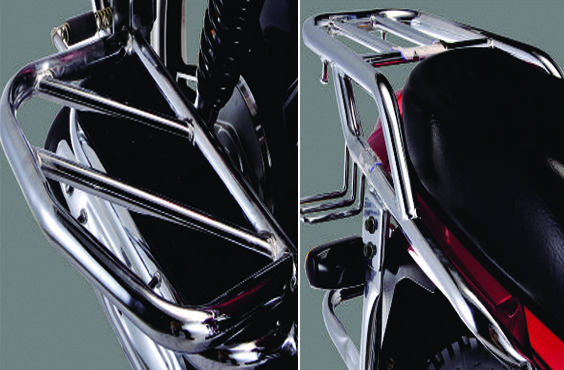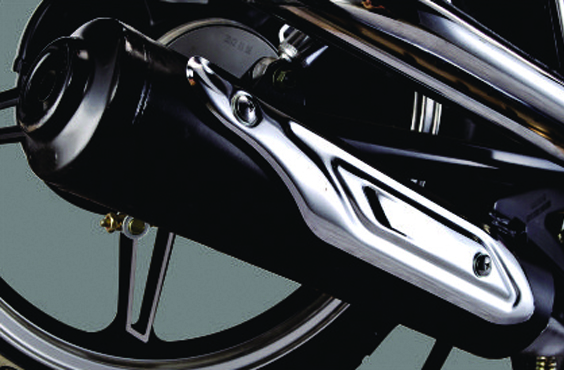 轻型消声器:大面积防烫板设计,有效保证骑乘用户的安全,三腔双触媒令排气声音更纯正,无杂音;