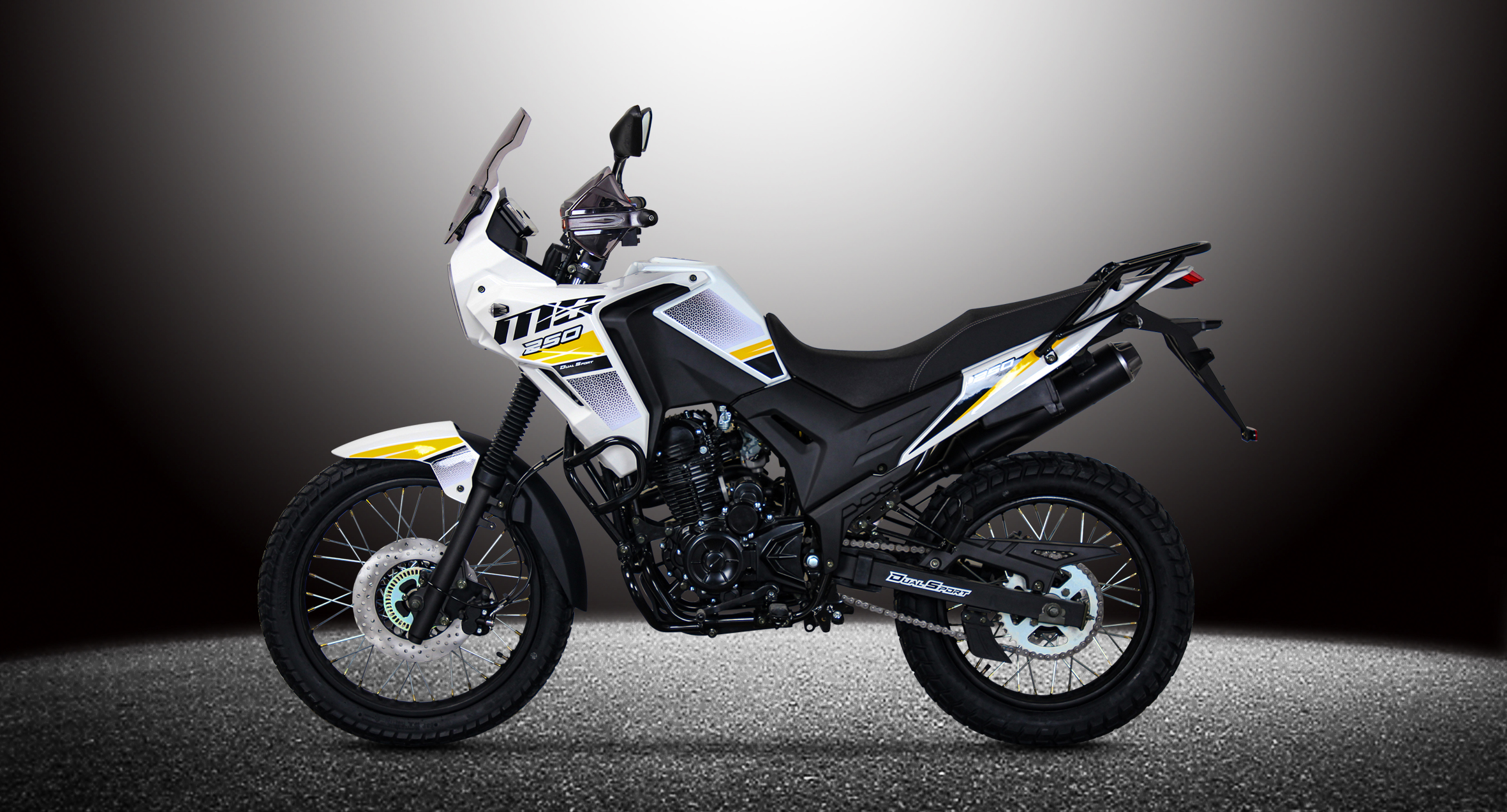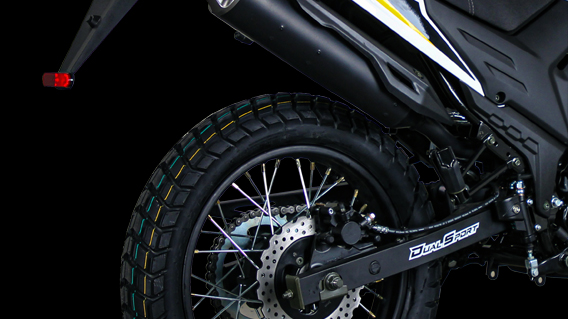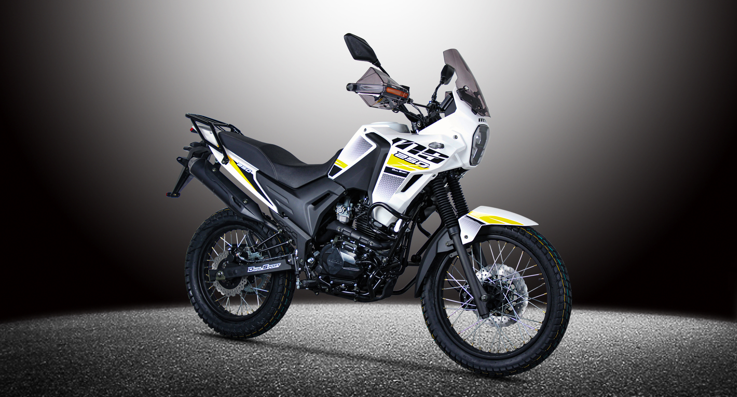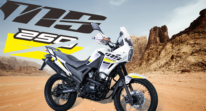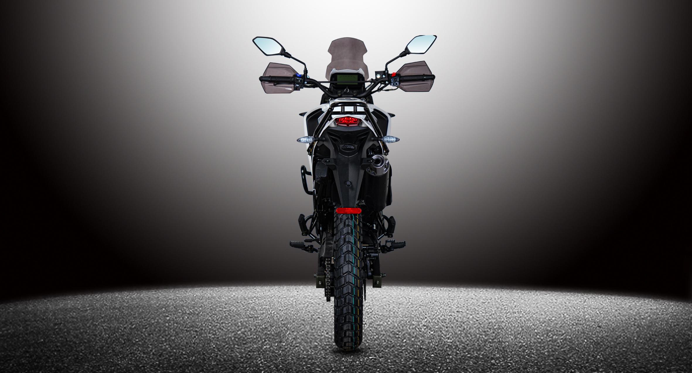 RE250, built-in counterweight engine, Oil cooled, E-start only, 6-speed, Spoke wheel, Tortoise-backed tyre, Fr. & Rr. disc brake, Centre placed absorber, Digital meter, Full LED lights, Emergency light, USB charging, Windshield, Hand protector, Rear carrier, Bumper, Half chain case.