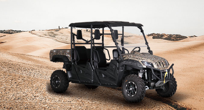 Liquid cooling CVT700 with reversal gear engine, EFI, Digital speedometer, Alloy wheel, Tubeless tyre, Fr. & Rr. disk brake, 2WD/4WD, Winch, Steering wheel, Roof, Pillow, Windshield, Guide door, Rr. cargo bed capacity. four seats。