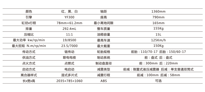 一款真正为疾驰而生的发动机:采用单杠四气门、双顶置凸轮轴柱式气门驱动方式,最大功率可达19KW,最大扭矩为23.5N.m