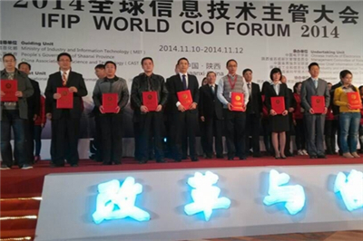 2014年11月11日,旨在宣贯国家两化融合理念,以“创新发展与信息技术主管使命”为主题的全球信息技术主管大会在陕西隆重召开。本次大会由工业和信息化部、陕西省人民政府、中国科学技术协会指导,国际信息处理联合会(IFIP)主办,来自全球最具影响力的重点企业代表1000余人参加了会议。依托隆鑫通用这个优秀的平台和企业良好的信息化生态环境,近年来在信息化领域取得了一些行业认可的成绩,经重庆市经信委选拔推荐,代表隆鑫通用动力股份有限公司参会的副总裁兼首席信息官何军先生经过层层遴选,荣获“全国百佳首席信息官”殊荣。