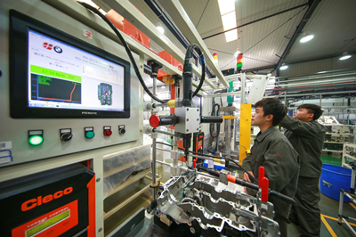 被认定为“数字化车间”的“高端大排量发动机装配数字化车间”是隆鑫为顺利推进宝马发动机项目而投资建设。它是利用大数据、云计算、物联网等对业务系统和现场生产进行深度融合,打造出的一套支持高端大排量发动机从产品设计、工艺设计、生产计划、制造执行、过程物料管控、质量管控、数据采集实时反馈,生产优化实时调度集成运行的高效创新模式车间。
