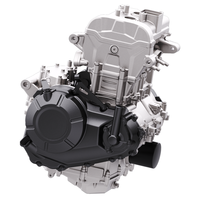 ● Parallel twin-cylinder with a 180° crankshaft and balance shaft effectively reduces engine vibration, enhancing riding comfort.